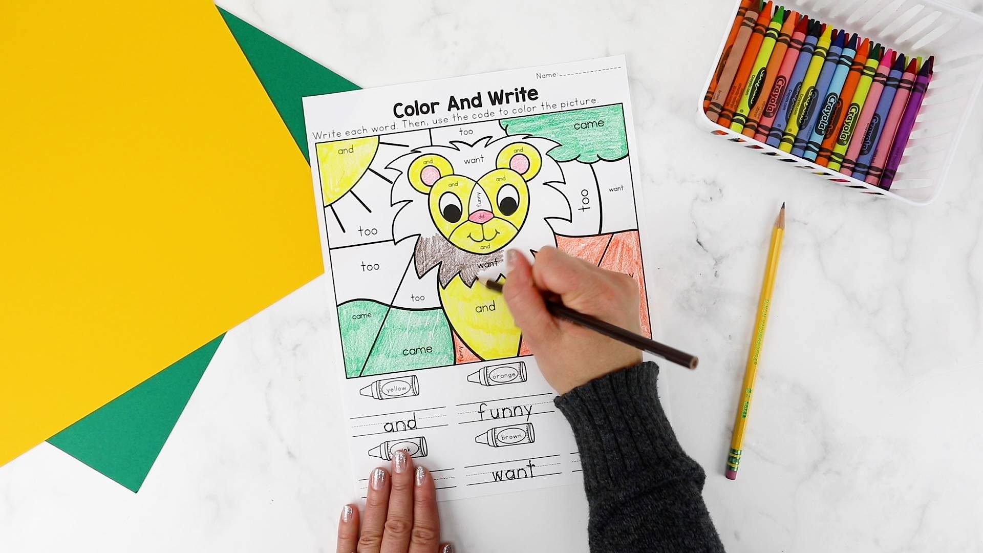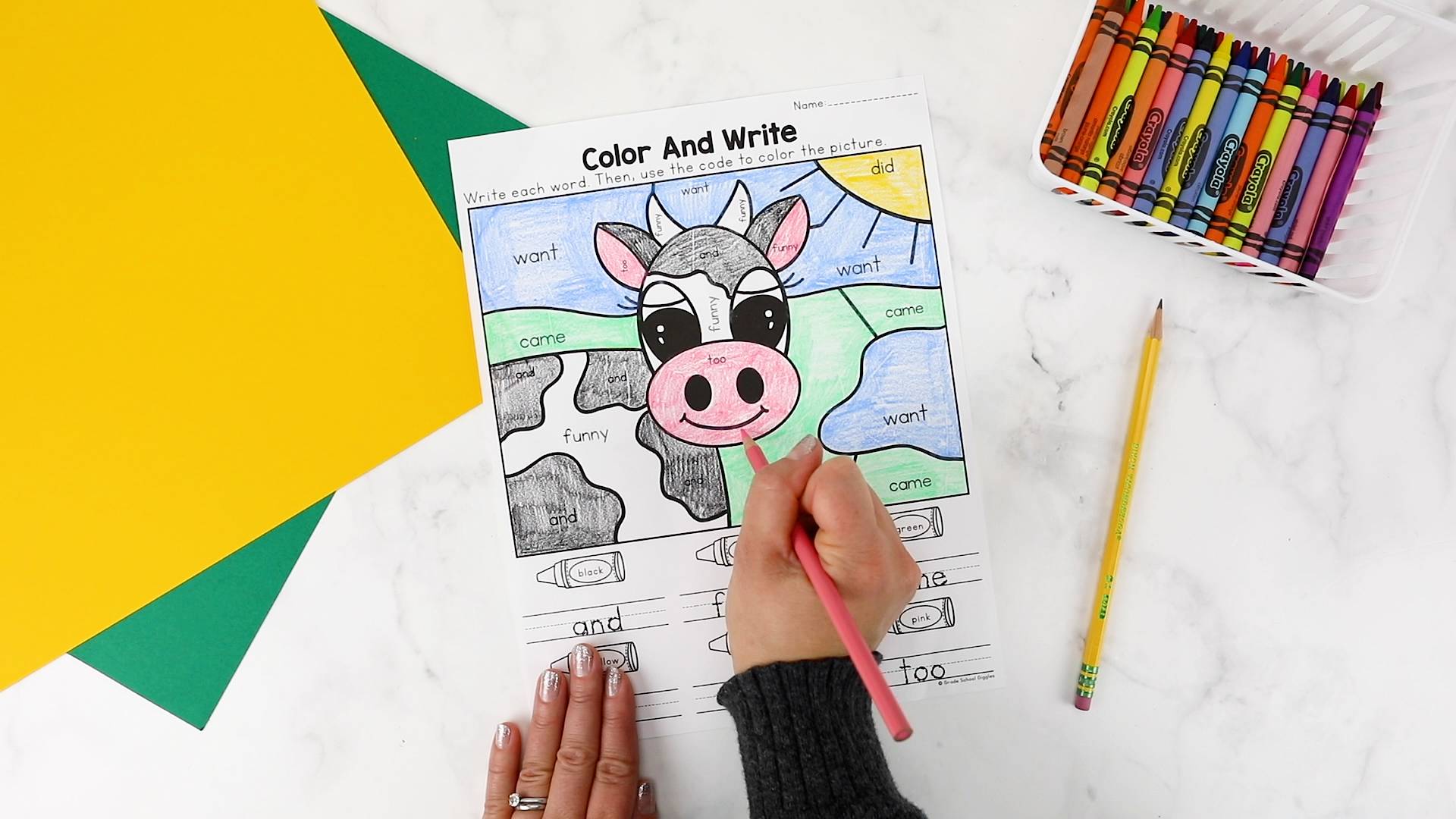 Just type six words. That's it! All the coloring pages will fill in with exactly the words your kids need to practice!
